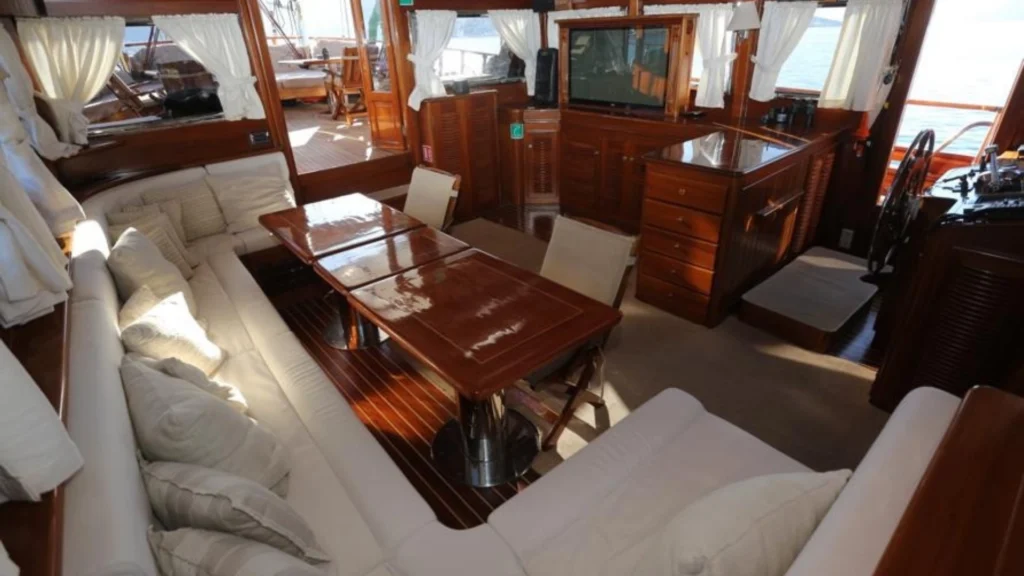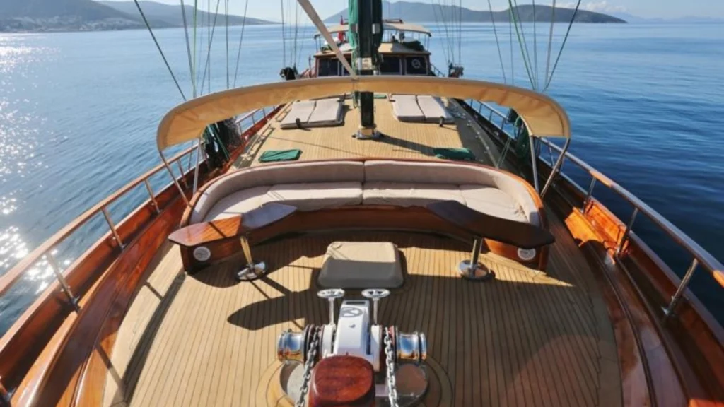 Cruise along the stunning coastline of the Turkish Riviera, where crystal-clear waters, hidden bays, and peaceful anchorages create the perfect setting for an unforgettable holiday at sea. ROS MARE is equipped with a tender boat and a wide range of water sports and leisure activities, including paddle board, canoe, water ski, wakeboard, snorkeling equipment, and more. Whether you prefer active days on the water or calm moments sunbathing on deck, every detail is designed to maximize your enjoyment. The yacht’s powerful engine and modern systems provide safe and comfortable cruising, while the crew takes care of navigation, meals, and daily service. If you are looking for a luxury gulet charter in Bodrum, ROS MARE offers an exceptional balance of elegance, comfort, and authentic sailing experience, making it a perfect choice for a private blue voyage in Turkey.